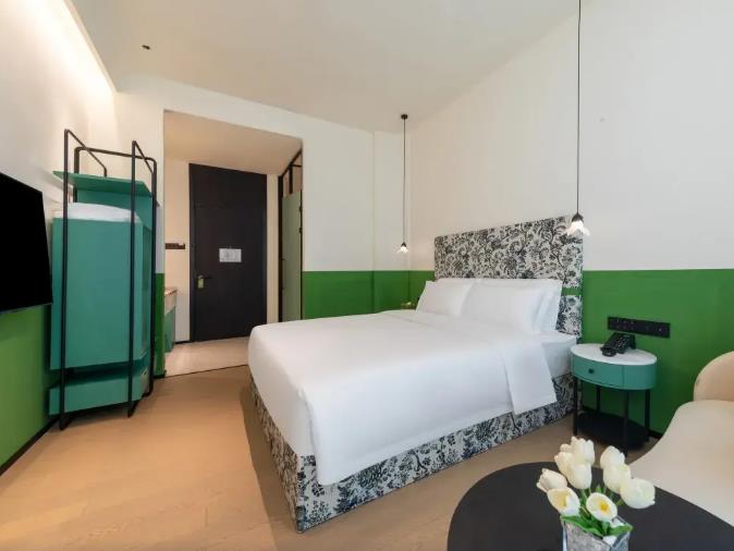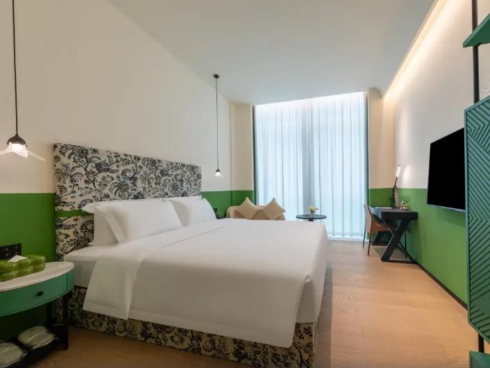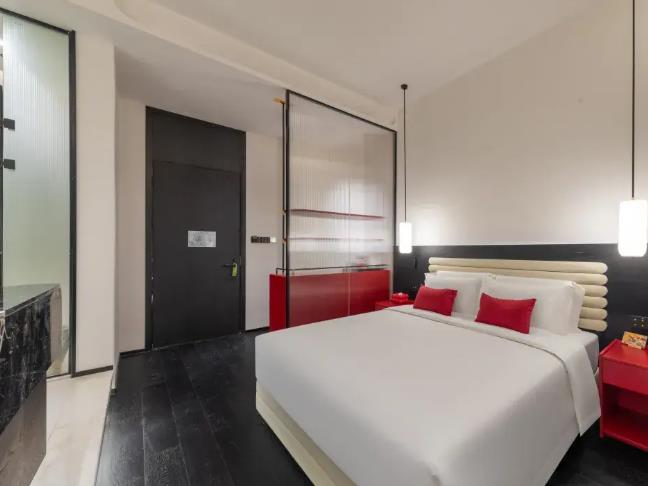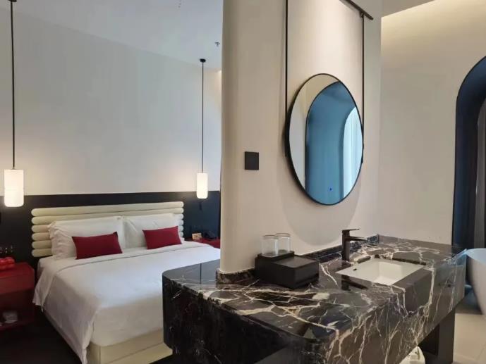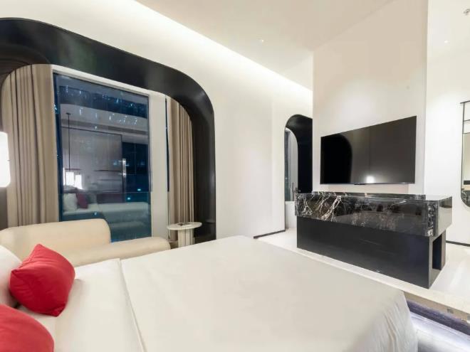 客房?jī)?nèi)飾:主打奶黃暖調(diào),搭配長(zhǎng)虹玻璃、藝術(shù)線條,柔和溫馨。部分房型帶超大戶外陽(yáng)臺(tái),城市夜景。